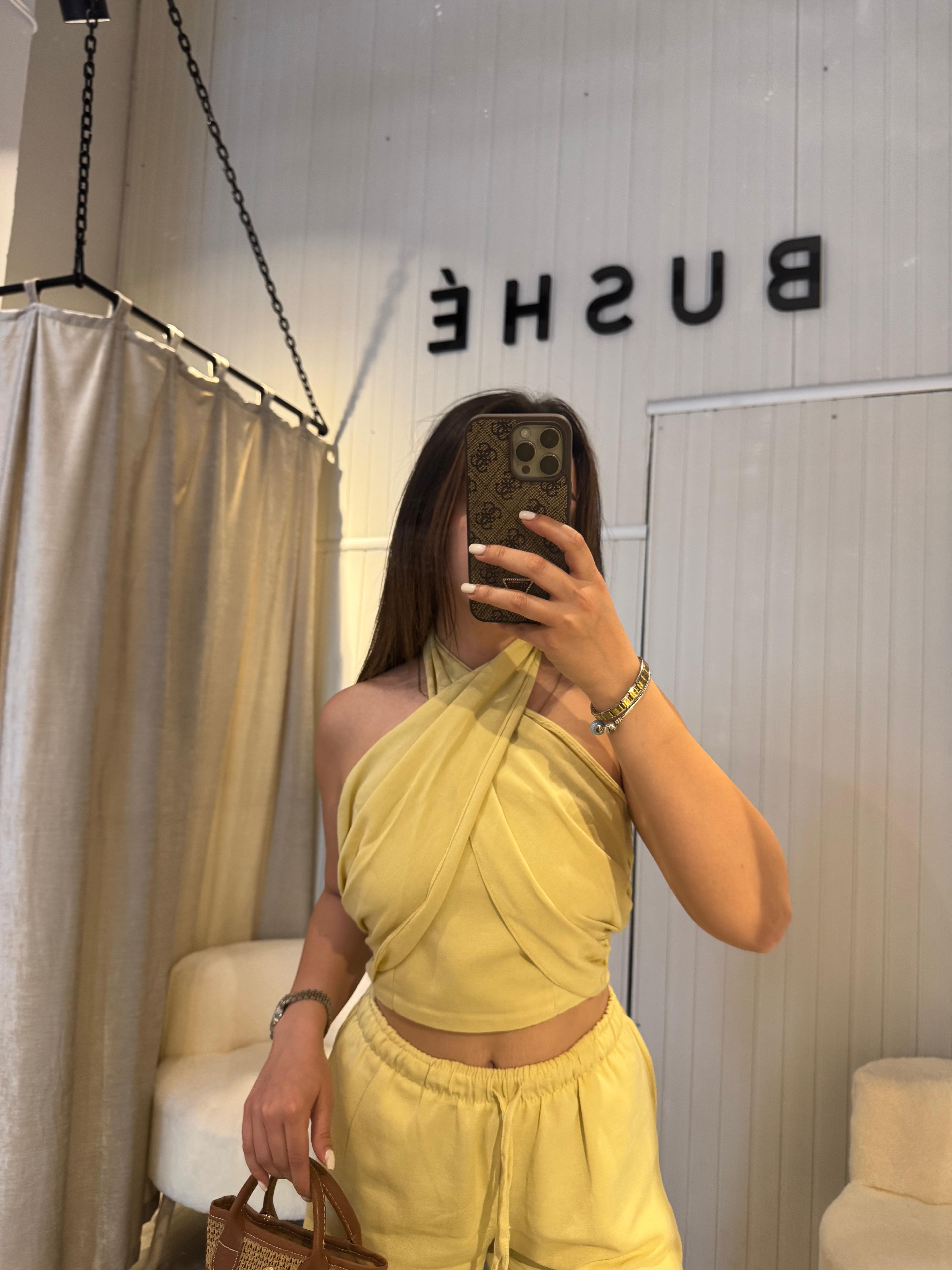 BOYUNDAN BAĞLAMALI LİMON SARISI TAKIM